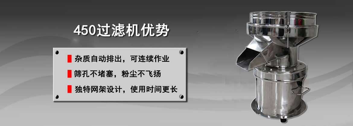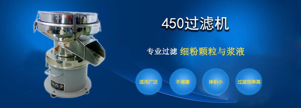450過濾機(jī)是為適用于漿液過濾作業(yè)、粉粒分級而專門設(shè)計(jì)一種高效率、低噪音小型單層篩分機(jī),它集液體過濾、粉粒分級功能為一體。在面粉、油漆過濾行業(yè)表現(xiàn)尤為卓越,如325目過濾比重1.1的噴漆料,每小時(shí)可達(dá)1200公升,30目篩分面粉每小時(shí)可處理700公斤。
